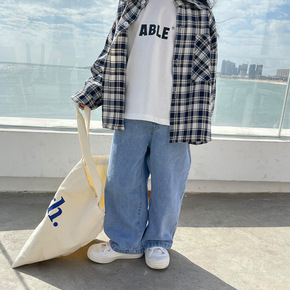 艾尔蒙特牛仔阔腿裤儿童中大童浅蓝色九分牛仔裤202...