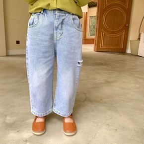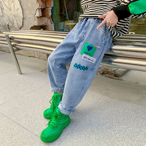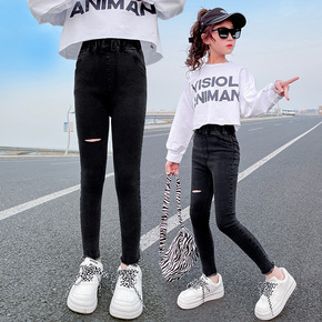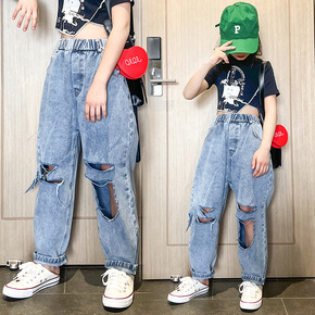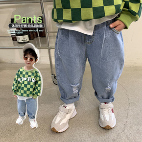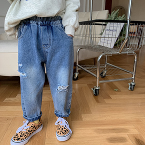 2022春男女童春季牛仔裤新款潮酷帅气磨破宽松版儿...