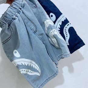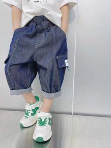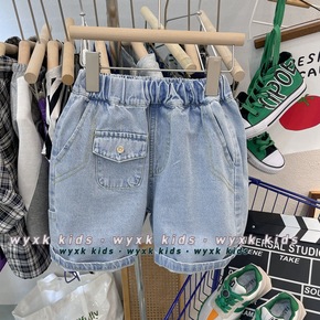 ifan男童牛仔裤潮2022夏季日系宽松宝宝鲨鱼休...