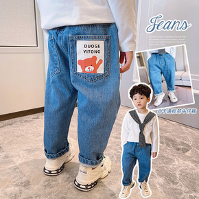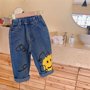 儿童牛仔裤2021眯眯眼秋季新品男女童笑脸卡通牛仔...