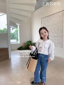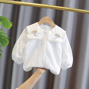 2022秋款 100-140码花边娃娃领衬衫 女童...