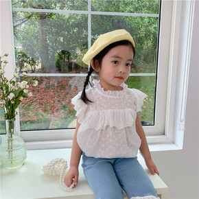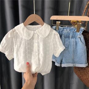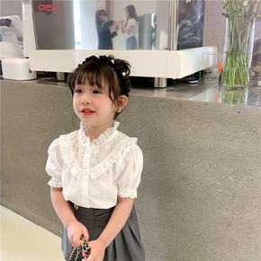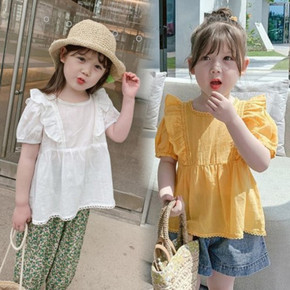 女童短袖上衣童装夏装2022新款儿童飞袖衬衫洋气娃...