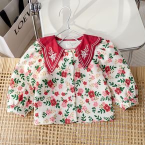 女童灯芯绒衬衫碎花尖领泡泡袖娃娃衫衬衣打底春款儿童...