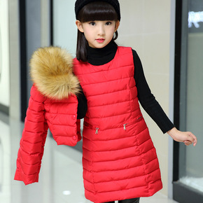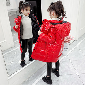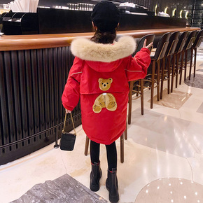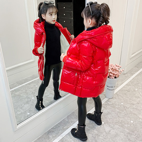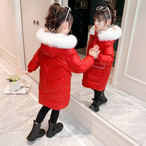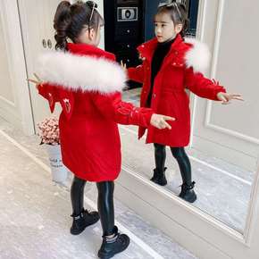 女童棉服中长款新款秋冬季儿童红色外套小女孩加厚棉袄...