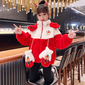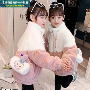 女童棉衣冬装2021新款儿童加绒棉袄厚外套女孩洋气...