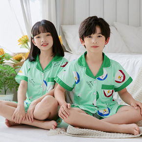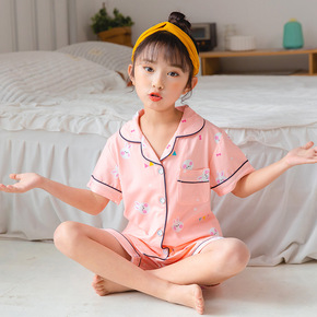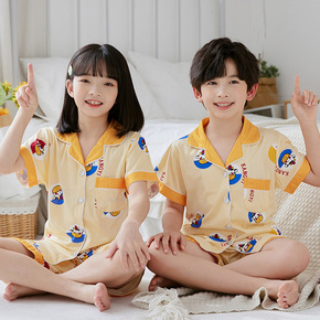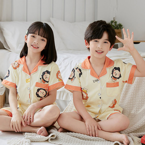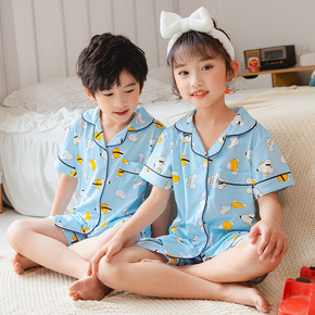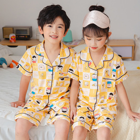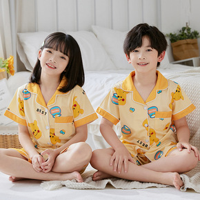 网红儿童睡衣夏季短袖短裤男女童卡通小宝宝套装中大童...