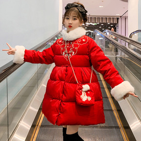 女童拜年服冬季新款加厚小女孩洋气儿童羽绒服喜庆中国...