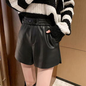 儿童皮短裤【不掉皮不裂痕】皮短裤女高腰宽松显瘦秋冬...