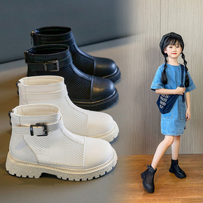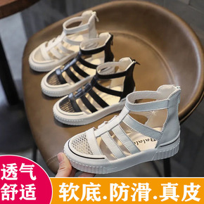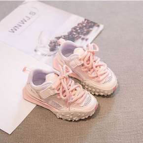 真皮女童运动鞋2022春季新款中大男童透气网面网红...