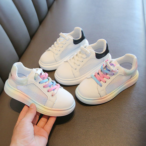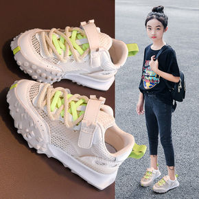真皮女童运动鞋2022春季新款春秋款大童透气网面网...