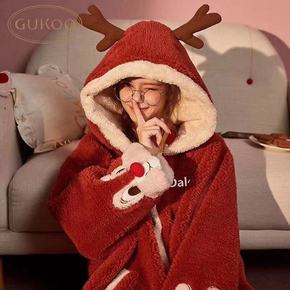 Gukoo/果壳同款珊瑚绒睡袍女睡衣甜美可爱卡通可...