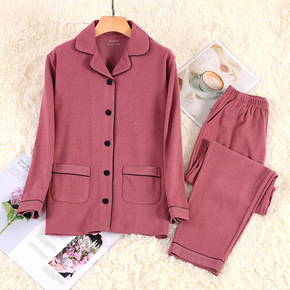 睡衣女秋冬加厚加绒女式开衫双面绒磨毛大码休闲宽松家...