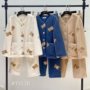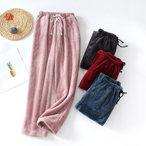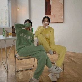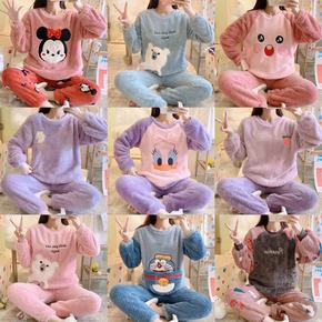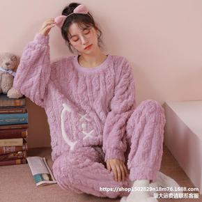 秋冬季长毛绒睡衣女法兰绒加厚珊瑚绒保暖家居服套...