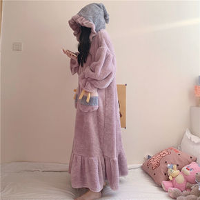 睡袍女2021年新款冬季加厚长款珊瑚绒睡衣秋冬睡裙...
