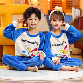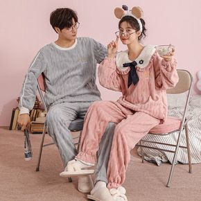 暖宝宝家居服套装情侣款加绒加厚秋冬圆领保暖珊瑚绒睡...