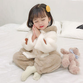 玉贵狗冬季睡衣女加厚长款睡袍带裤子套装甜美可爱卡通...