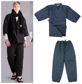 情侣纯棉夹棉半缠作务衣甚平和服浴衣汉服禅服保暖束袖...