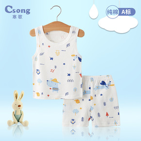 婴儿纯棉背心短裤套装夏季薄款女宝宝无袖两件套幼儿男...