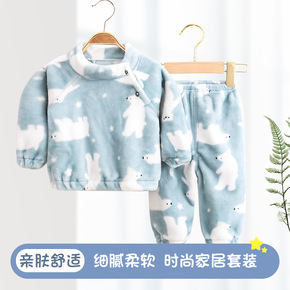 男女暖暖裤套装儿童珊瑚绒睡衣宝宝家居保暖衣睡衣 有...