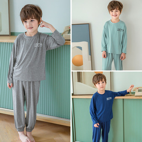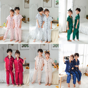 2022新款中大童童装夏季宝宝棉绸睡衣套装五分袖男...