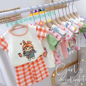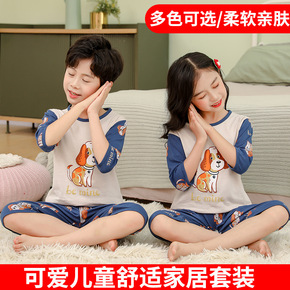 儿童外贸家居服套装夏季短袖短裤呼吸棉薄夏季空调服男...