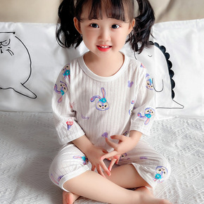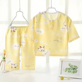 儿童长袖薄款睡衣套装宝宝纯棉衣服婴儿夏季空调房两件...