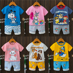 跨境童装儿童短袖套装夏季新款儿童卡通居家服睡衣亚马...