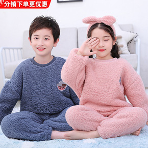 儿童家居服秋冬加厚保暖羊羔绒男童套头中小童宝宝女套...