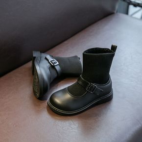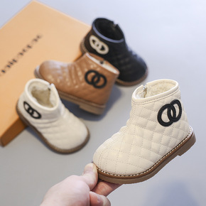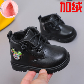 儿童靴子软底女童马丁靴秋冬款棉靴保暖英伦风男童皮靴...