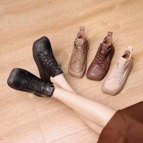 2021秋冬新款圆头侧拉坡跟厚底短筒靴女欧美女式p...