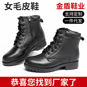 现货批发秋冬季加绒保暖女士皮靴休闲牛皮女生短靴雪地...