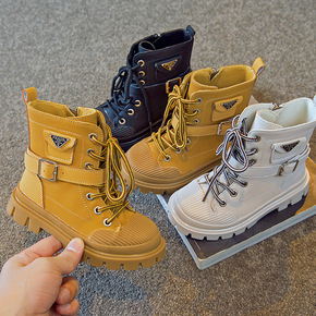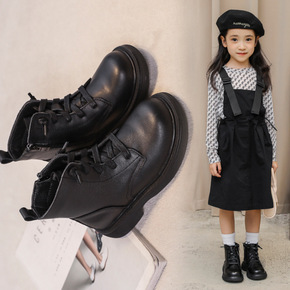 儿童马丁靴2021秋冬时尚百搭靴子中大童牛皮单靴英...