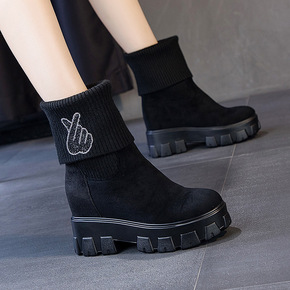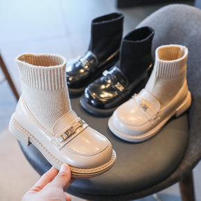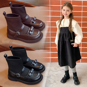女童短靴秋季新款靴子儿童马丁靴秋冬棉靴袜子靴春秋皮...
