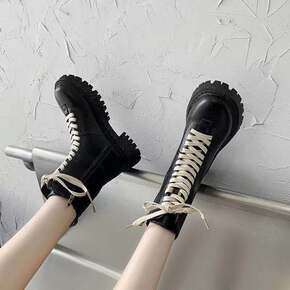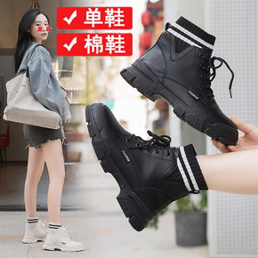 秋季女鞋女式马丁靴高中生皮靴百搭初中生短靴短筒平底...