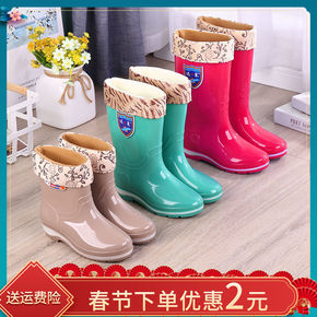 梅义狼2021秋冬新款圆头甜美珍珠粗跟牛皮时装靴套...
