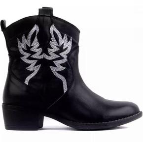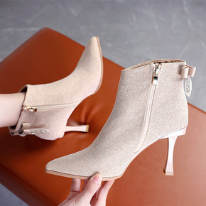 欧美少女水钻短靴女尖头细跟蝴蝶结高跟鞋潮流秋季新款...