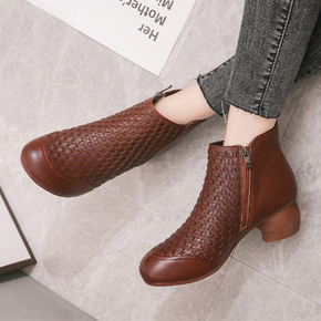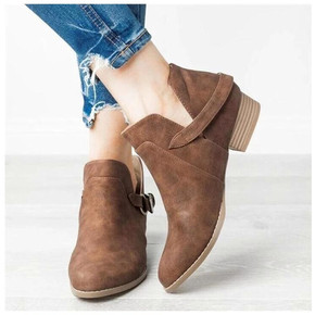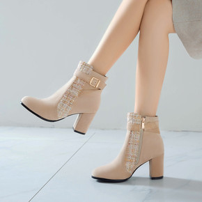 外贸独立站新款2020冬季女鞋中跟侧拉链欧美风粗跟...
