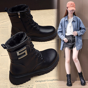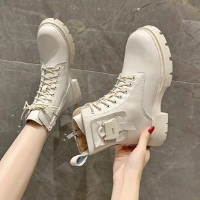 马丁靴女2021新款秋季靴子女短筒女式皮靴韩版厚底...