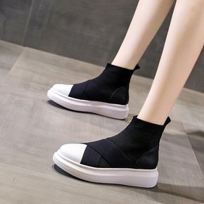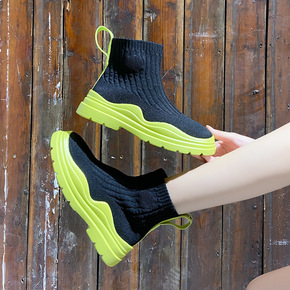 袜子鞋女春夏款高帮鞋2022休闲厚底弹力飞织袜靴运...
