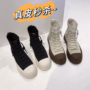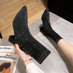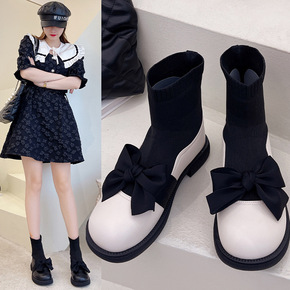 袜子鞋英伦风弹力袜显瘦短靴2022新款春秋单靴内增...
