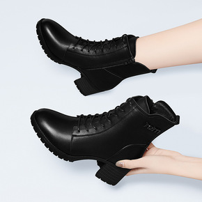 新款2021春秋季女靴成熟马丁靴舒适高跟短筒女鞋包...