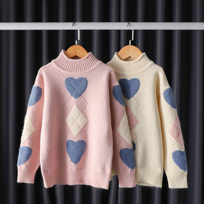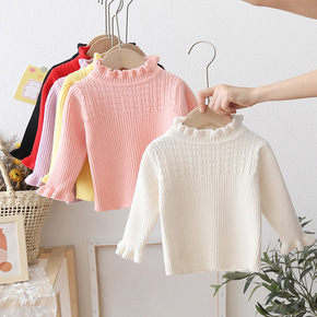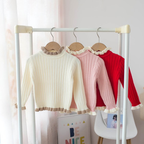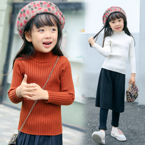 儿童针织女童毛衣加厚加绒针织两翻高领打底衫2019...
