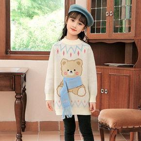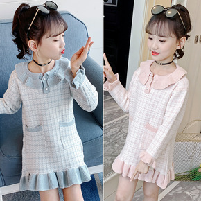 女童毛衣2022新款秋冬洋气针织连衣裙中大童长袖蝴...