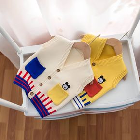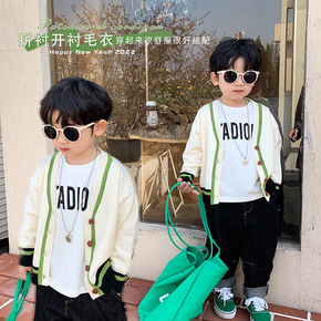 儿童针织开衫2022春装新款女童韩版V领拼色针织衫...