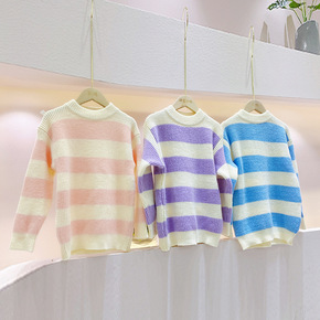 儿童彩虹毛衣秋冬款2021韩版宝宝条纹套头打底衫女...