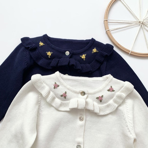 2021春秋季新款女童毛衣开衫中大儿童刺绣针织衫女...