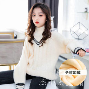 2021女童毛衣打底衫套头高领儿童保暖加绒加厚毛衣...