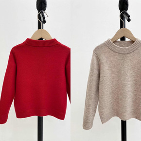 羊驼绒圆领男童女童毛衣加厚新款秋冬中童韩版针织衫套...