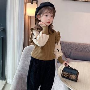 毛衣儿童加绒加厚女童毛衣2021年新款秋冬韩版拼接...