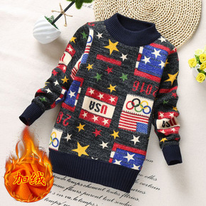 男童毛衣加绒加厚秋冬款套头中大儿童装小男孩宝宝针织...